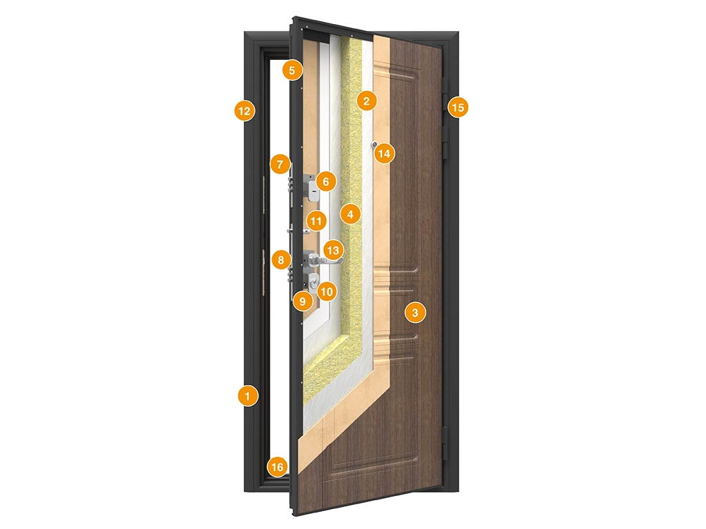 Дверь Премиум Плюс/890/2050/9005/Сталь 9005 муар/Дуб белый патина/Классика/лев/угл