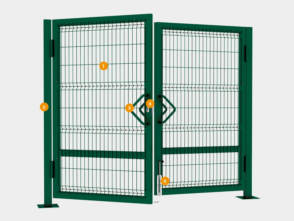 Распашные ворота со стальной рамой и с заполнением сварной сеткой,